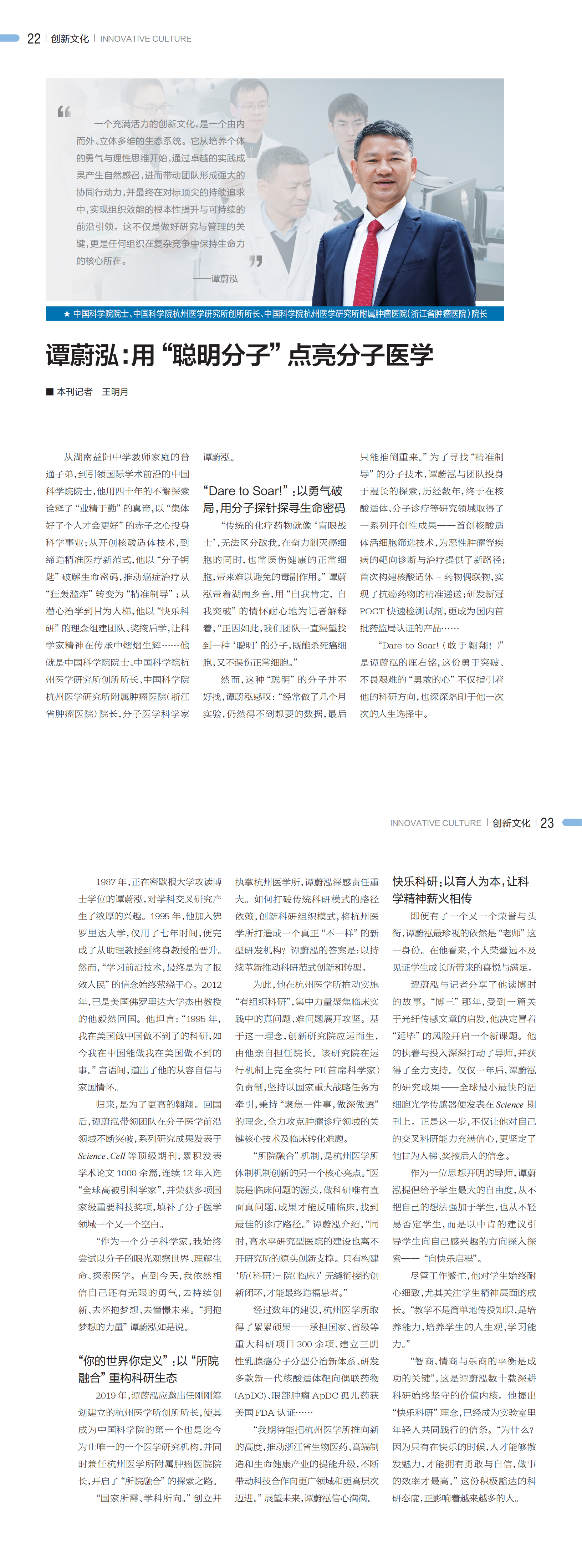 【创新浙江】谭蔚泓:用“聪明分子”点亮分子医学
