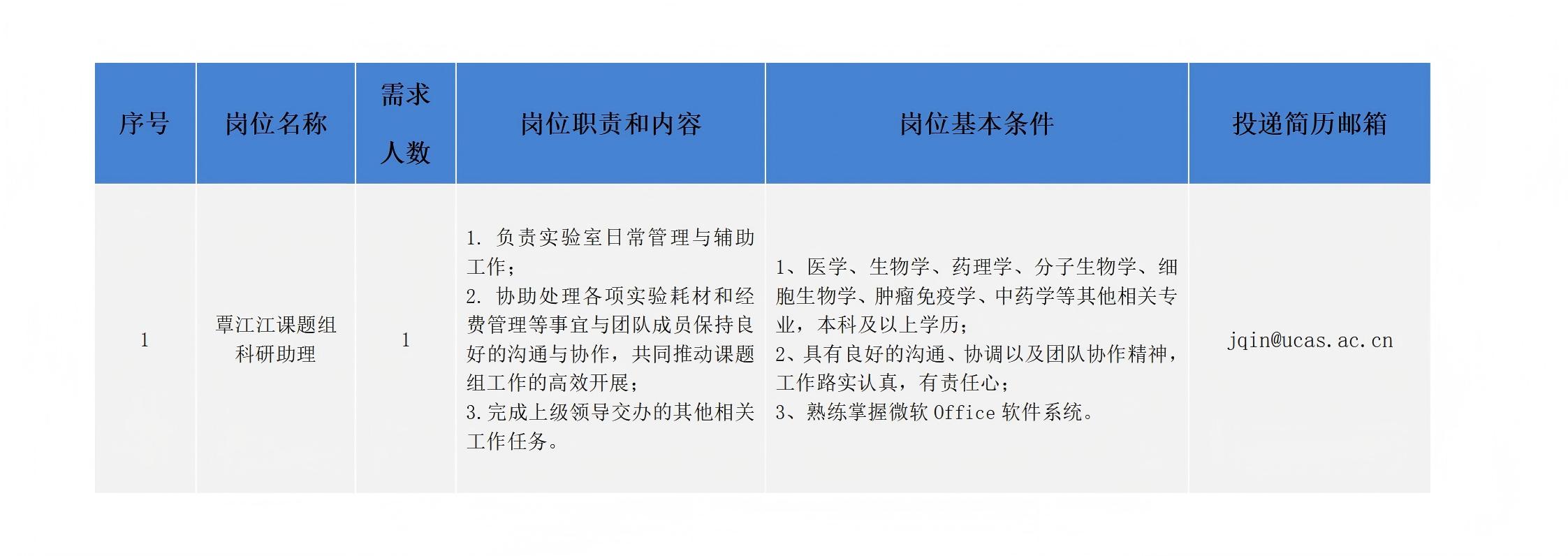 中国科学院杭州医学研究所科研助理招聘启事